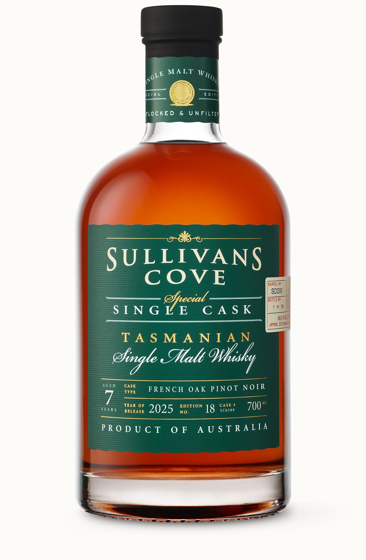 A deeply expressive whisky balancing fresh Pinot Noir with the slow-developed depth of toasting and age - layered, complex, and unmistakably Sullivans Cove.