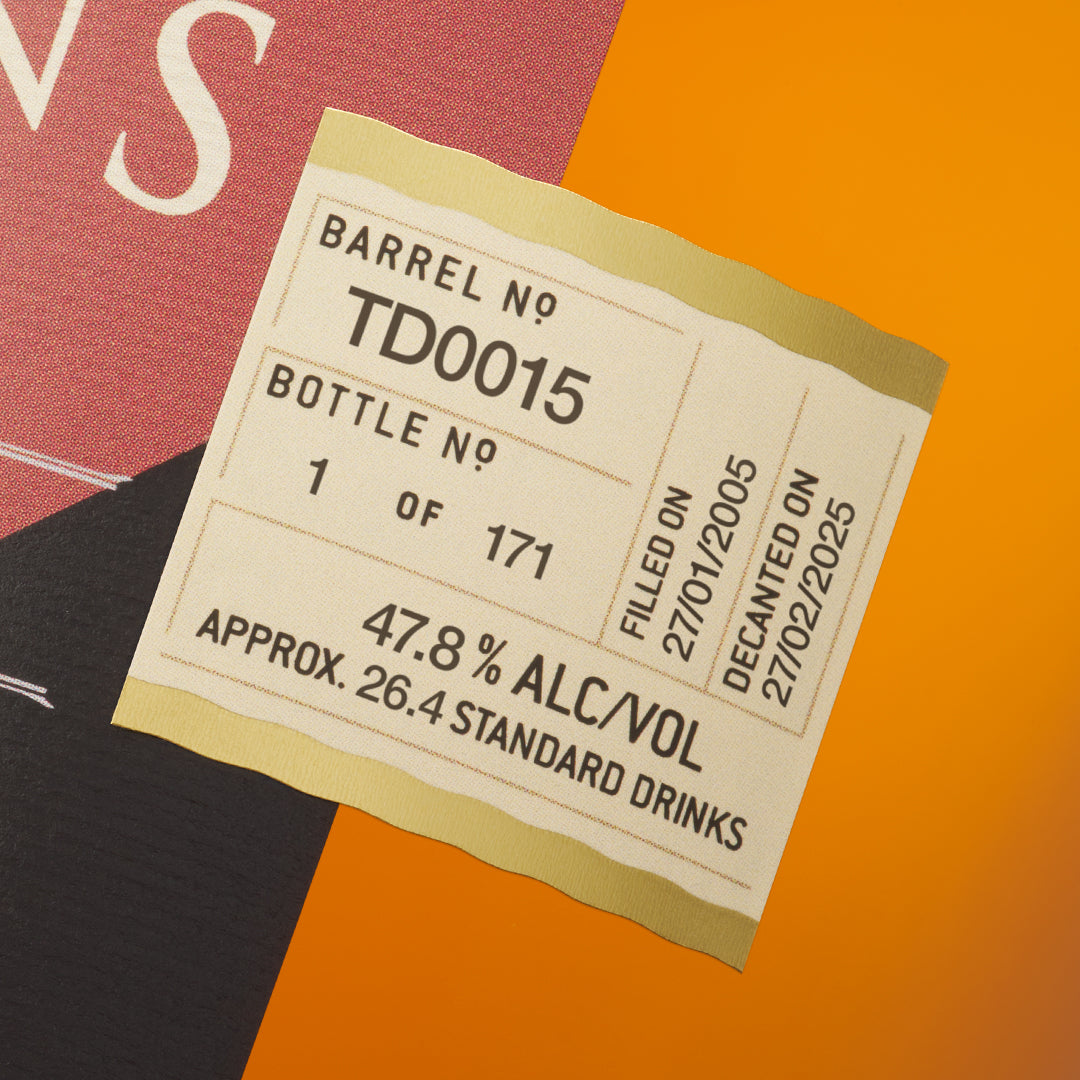 20 Year Old American Oak Second-Fill Single Cask TD0015 was filled in January of 2005 and decanted in February of 2025, for a maturation of 20 years and 1 month.