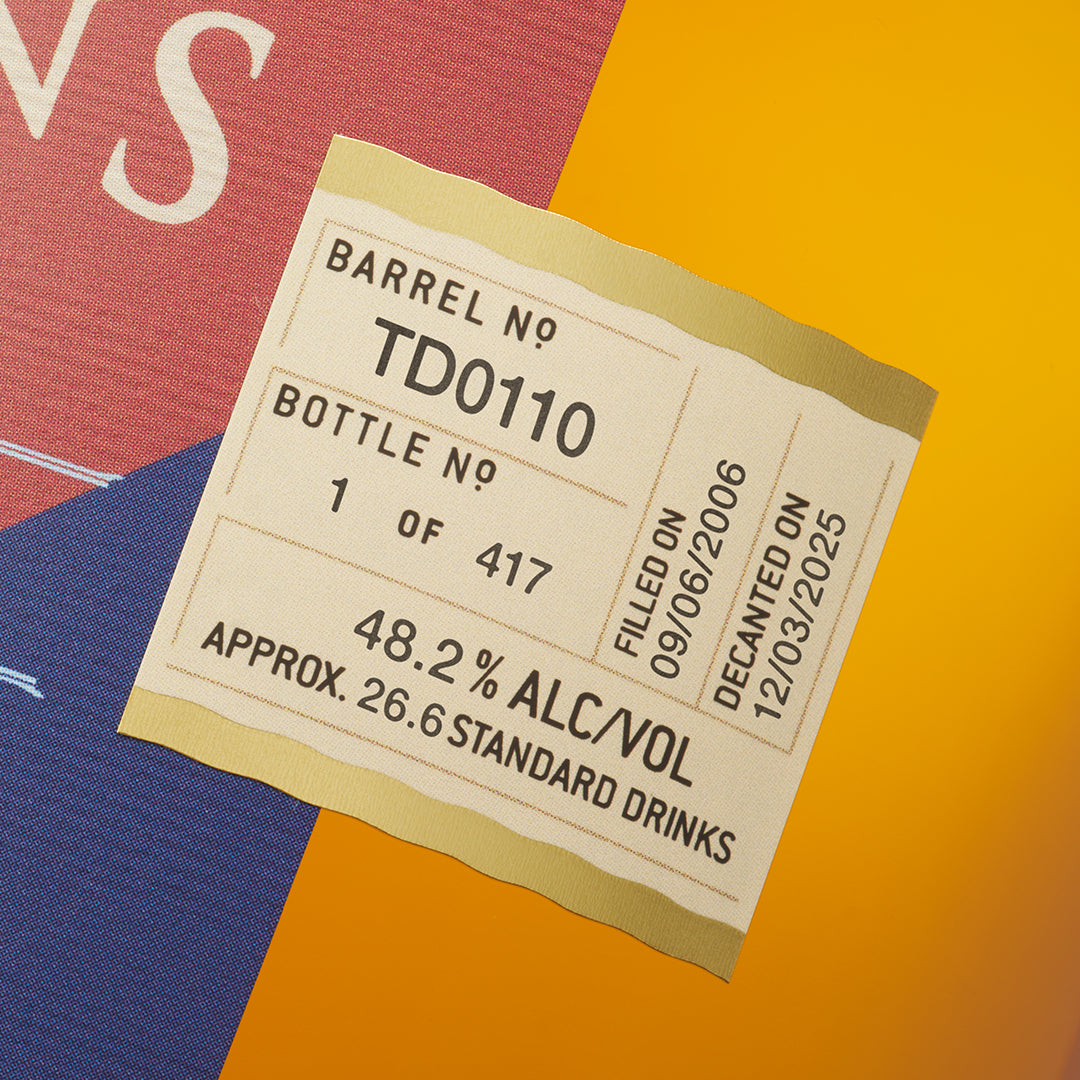 Single cask TD0110 was distilled in June of 2006 and decanted in March of 2025, aged in a single 300L French oak second-fill cask for 18 years, 9 months. Bottled at 48.2% ABV, this cask yielded only 417 bottles.